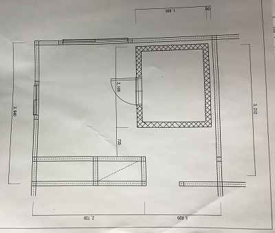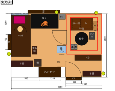 それをアレンジして防音室の配置設計図を描いてみたところ、
